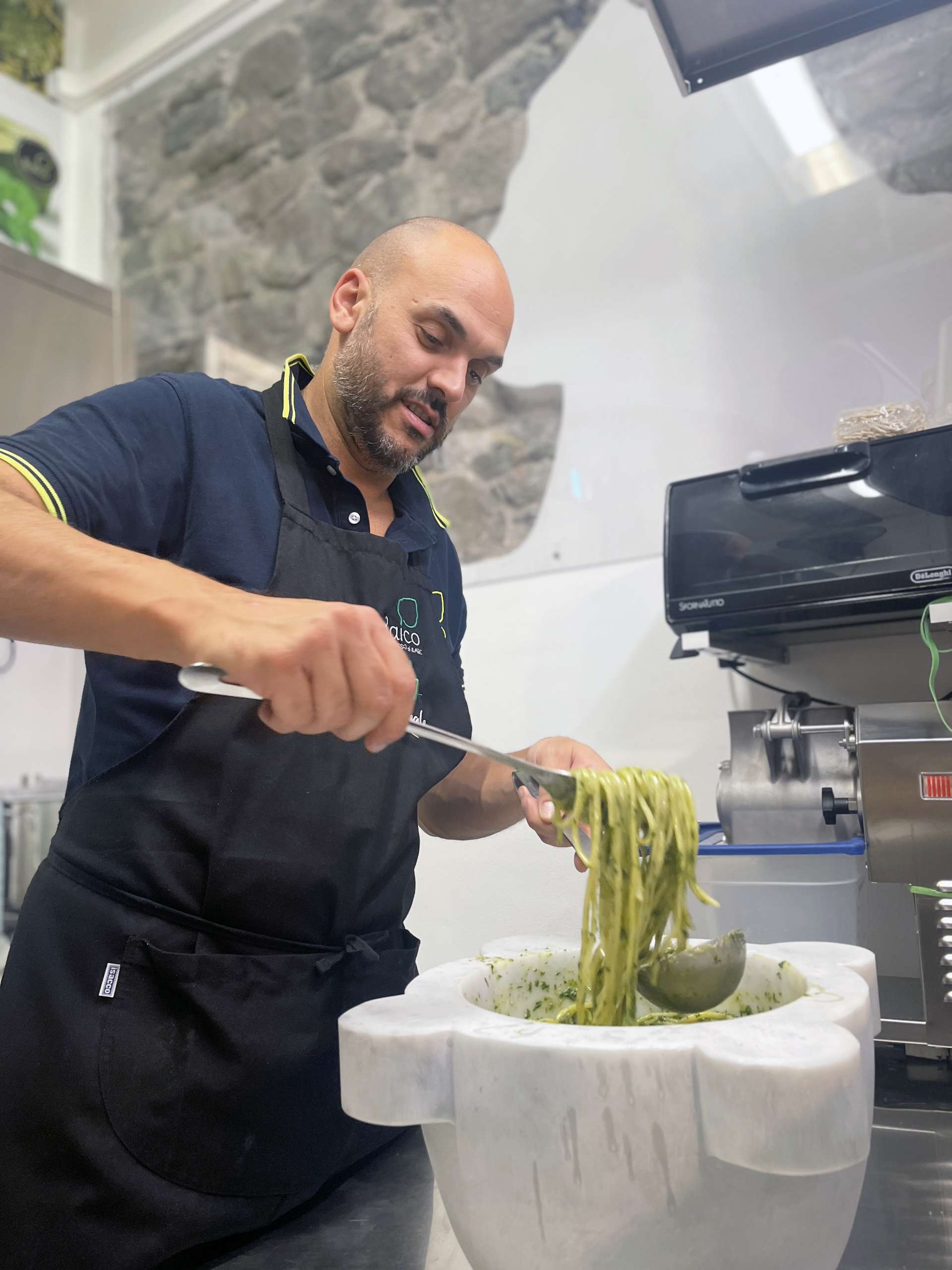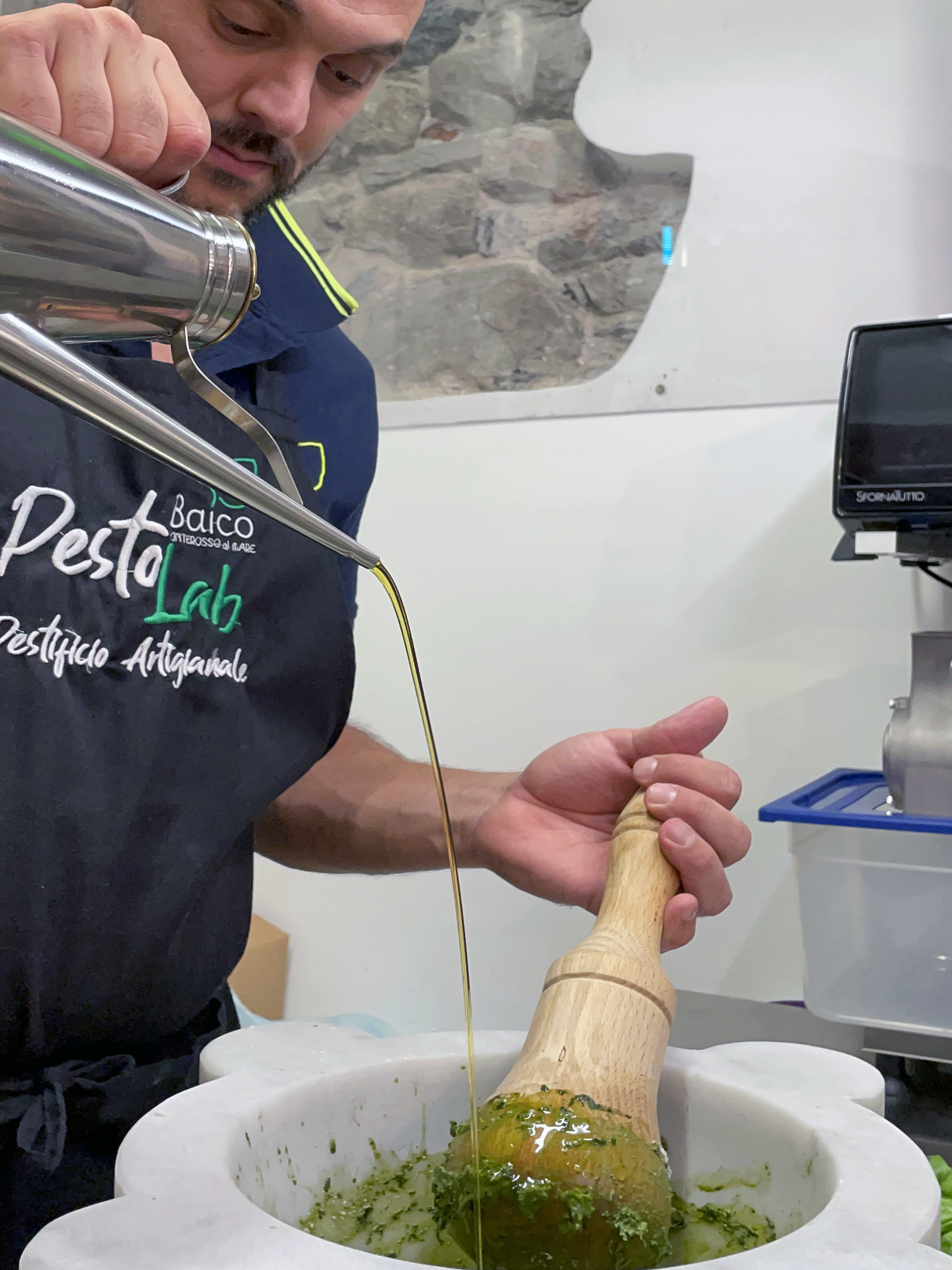 Pesto Lab, frutto di un’idea illuminata di Davide Faravelli il suo fondatore, è una risorsa preziosa per la cultura dei sapori di Monterosso e più in generale delle 5 Terre, in laboratorio si lavora manualmente con antiche ricette che rischiano di essere stravolte dalle moderne tecnologie elettromeccaniche che tolgono il contributo prezioso delle mani da ogni fase lavorativa.